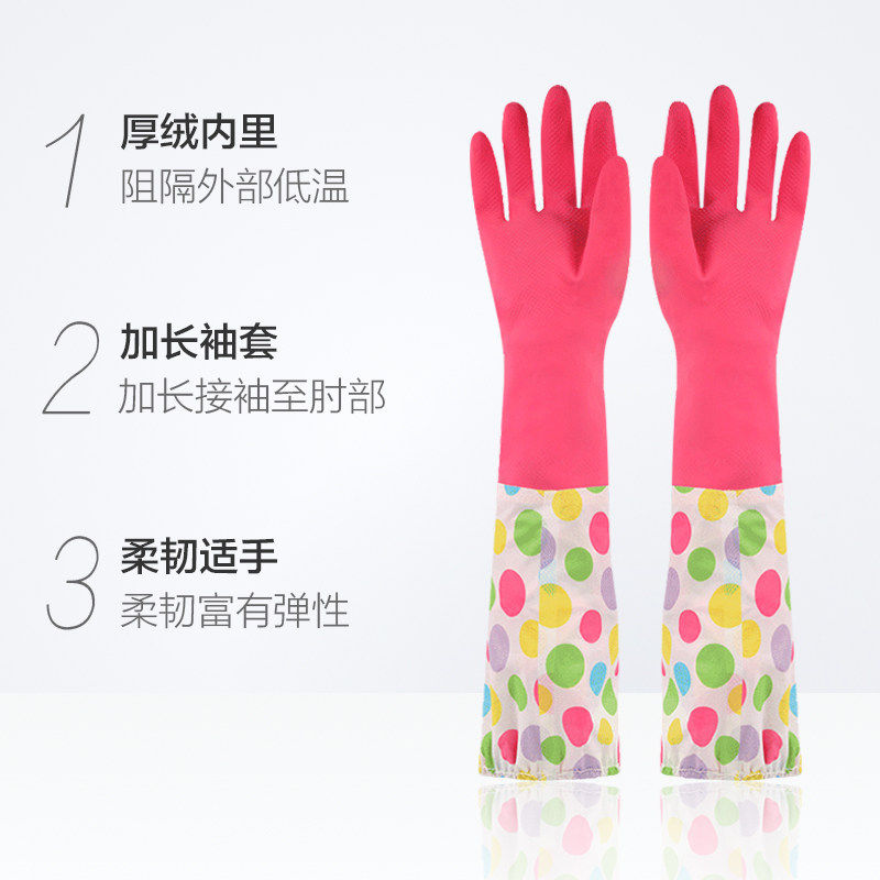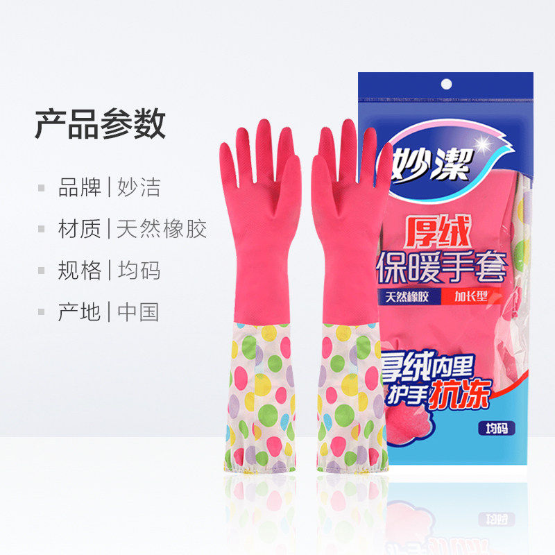 📚 妙洁厚绒冬季手套保暖加厚无味加绒防水手套乳胶家务洗碗洗车手套