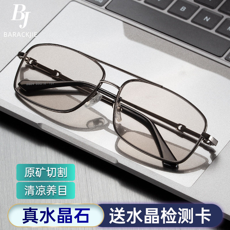 📚 浅茶色水晶眼镜水晶石太阳镜真石头墨镜东海老人养目护目正品高档