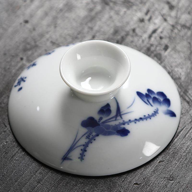 📚 盖碗茶杯单盖子陶瓷三才泡茶碗家用配件功夫茶具零配青花白瓷大号