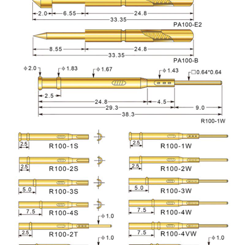 📚 R100-3S 华荣探针 1.7mm测试探针 焊线针套 探针座 套管品质保证
