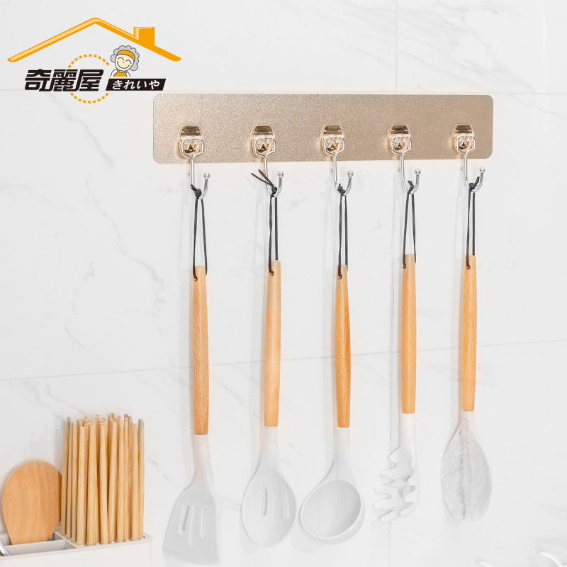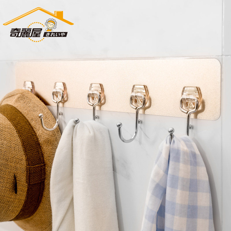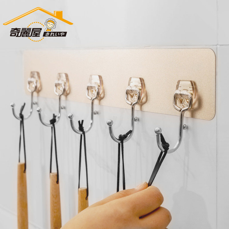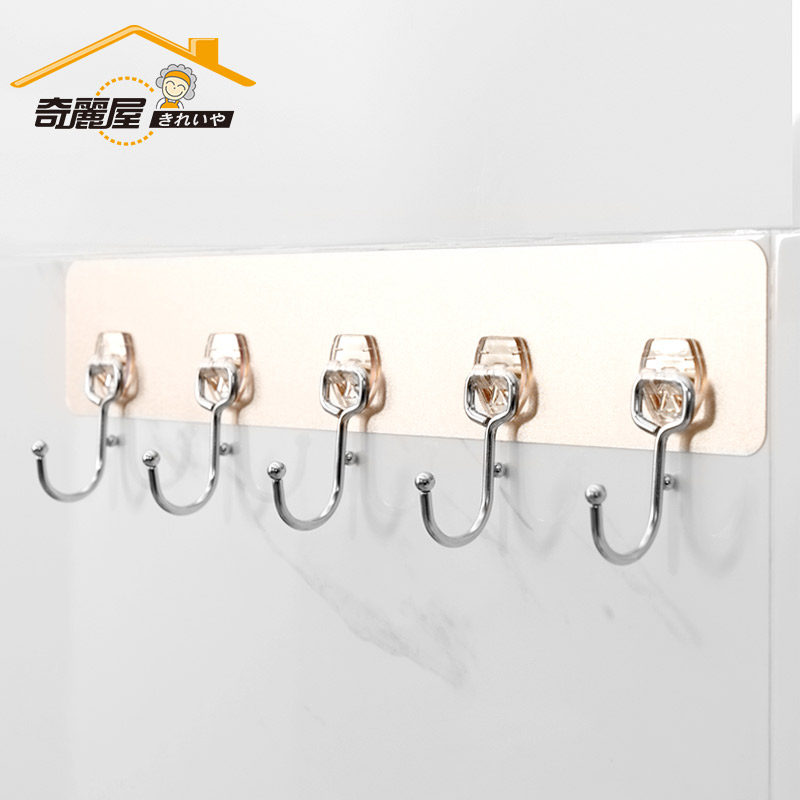 📚 奇丽屋免打孔304不锈钢5连钩无痕贴片厨房浴室衣帽间大号联排挂钩