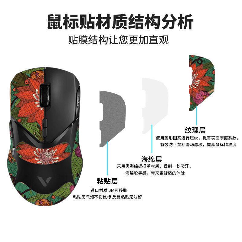 📚 适用雷柏VT9鼠标防滑贴VT7二pro/VT3max贴纸保护贴膜吸汗防滑