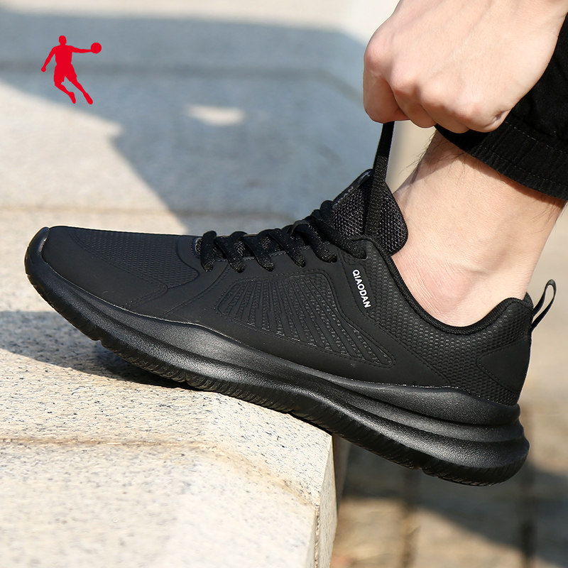 📚 乔丹男鞋运动鞋夏季2022新款皮面保暖防水跑步鞋纯黑色旅游鞋波鞋