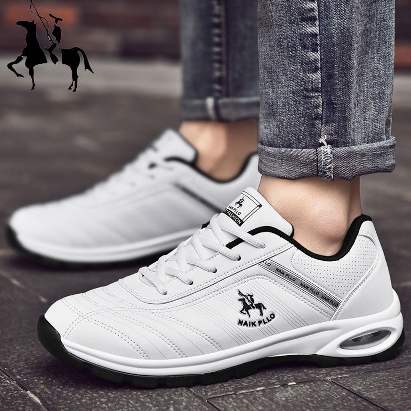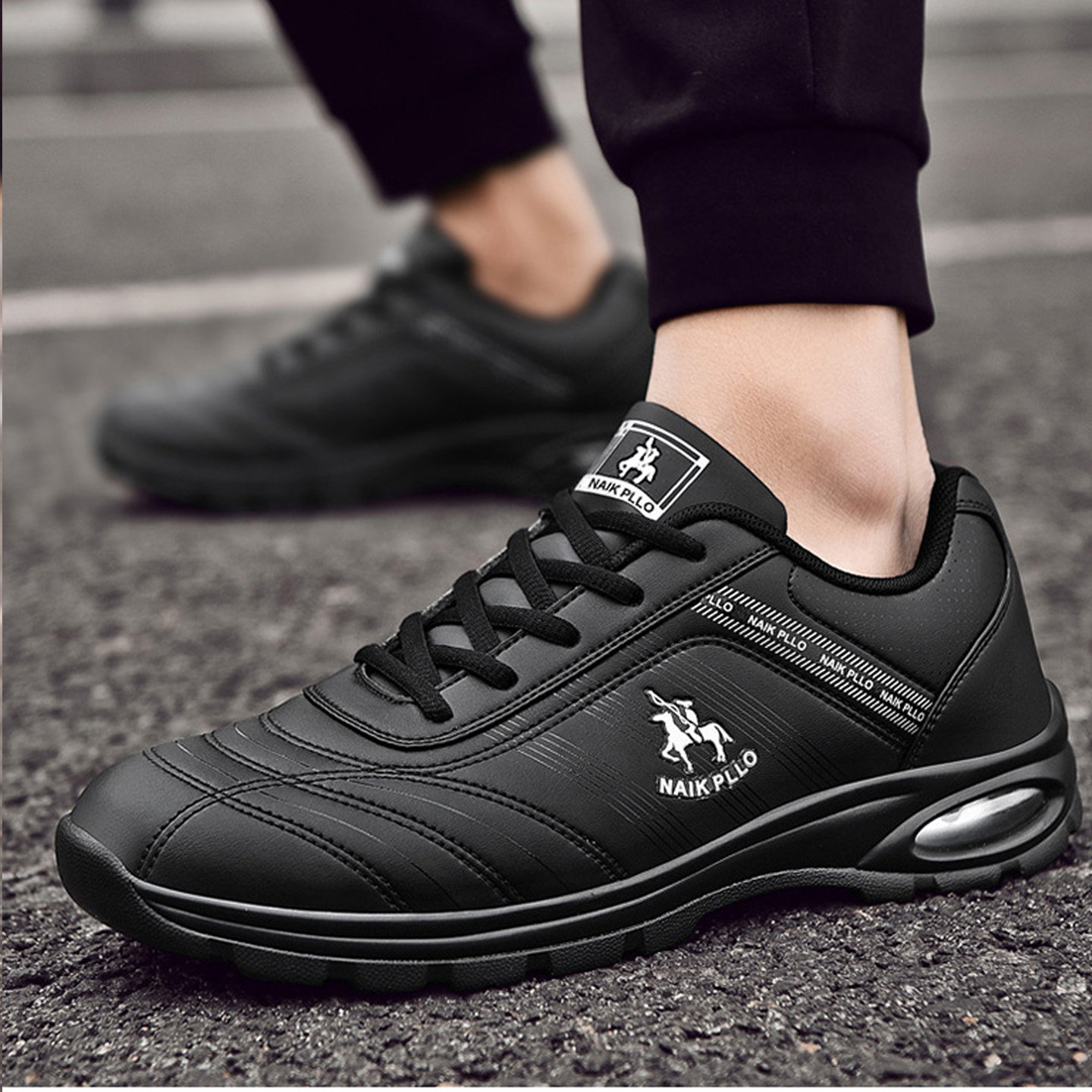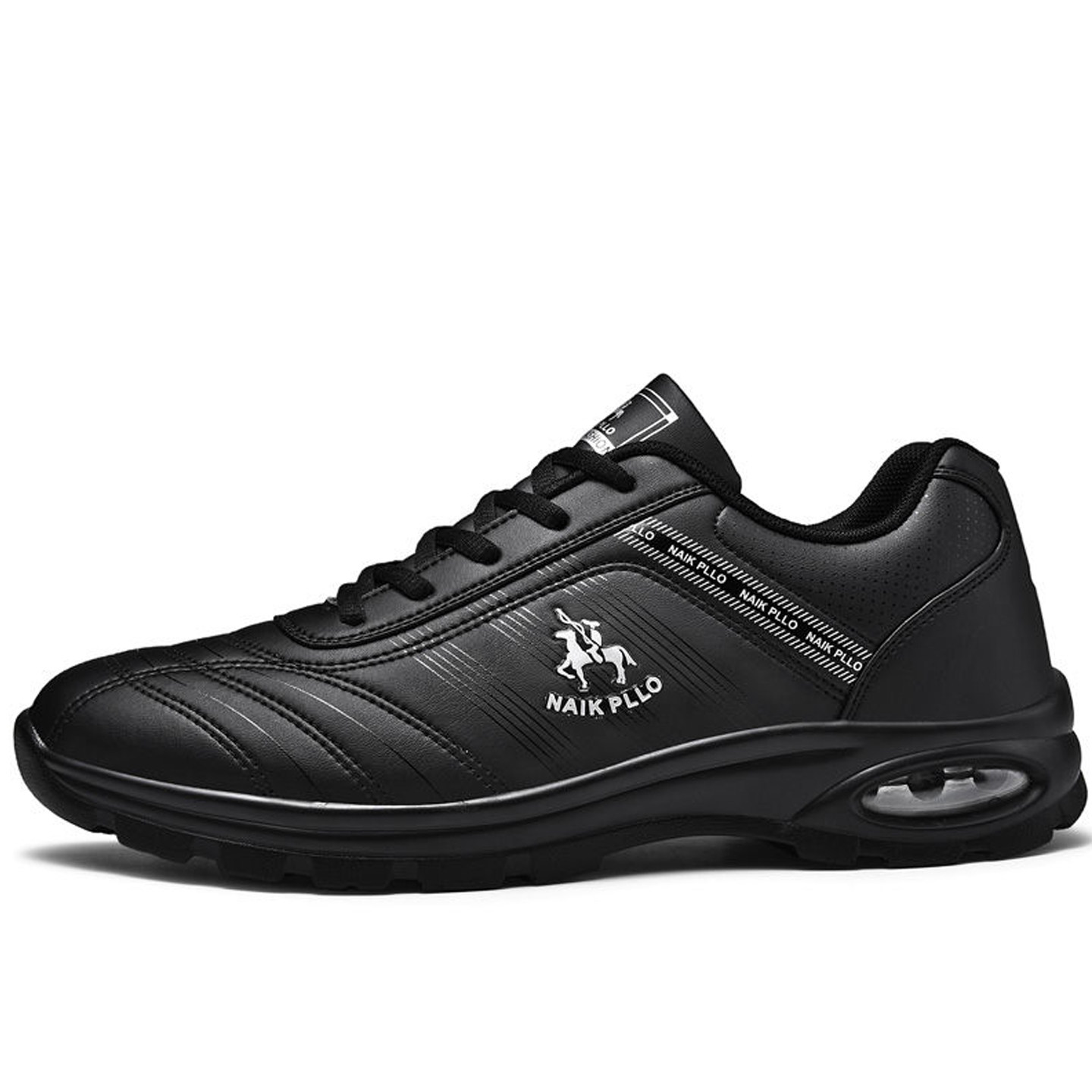 📚 保罗男鞋冬季厚底气垫运动鞋黑色皮面旅游鞋跑步男士波鞋休闲皮鞋