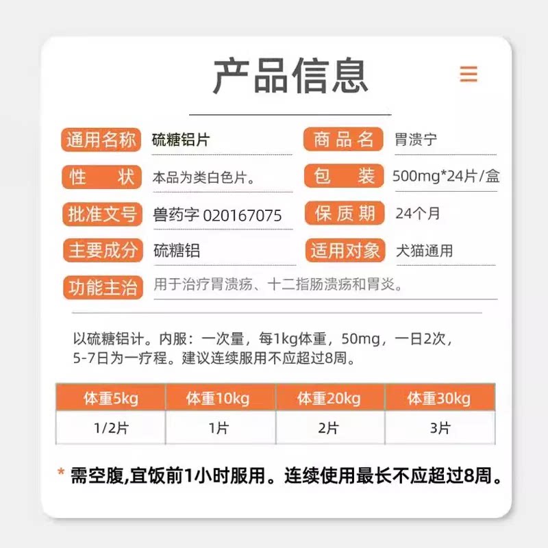 📚 保灵胃溃宁犬猫硫糖铝片急性肠胃炎反流止吐胃肠溃疡胃黏膜修复狗