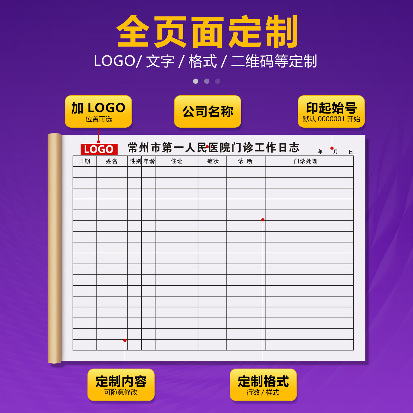 📚 【门诊工作日志】定制医疗机构就诊病人登记本口腔患者治疗通知单中医诊病医案本诊所问诊记录本卫生室处方笺