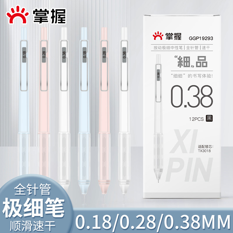 📚 掌握按动0.28mm全针管0.38mm刷题笔0.18极细速干st笔头中性笔会计财务专用签字记账笔碳素顺滑高颜值学生水笔
