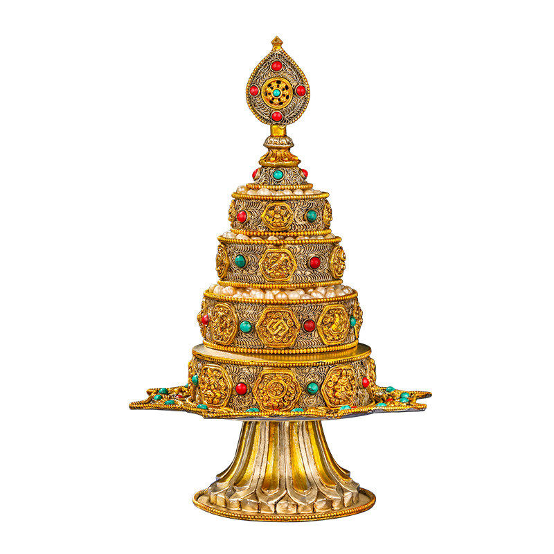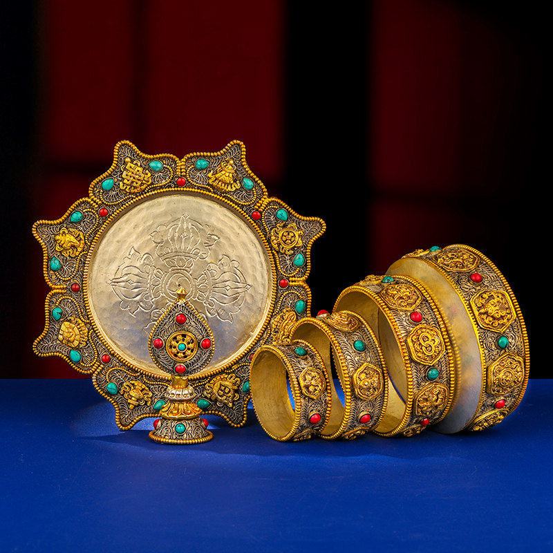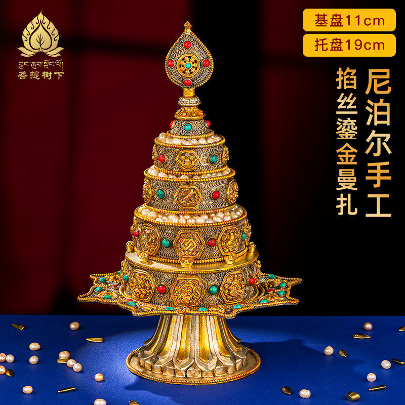 📚 尼泊尔曼扎盘全套手工掐丝宝石曼茶罗莲花盘八吉祥铜大号曼扎11cm
