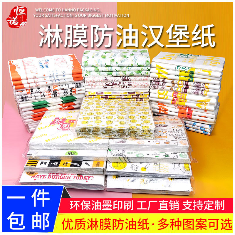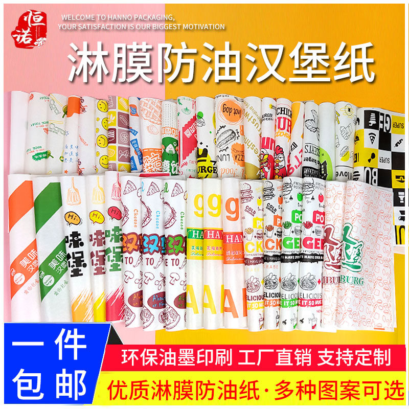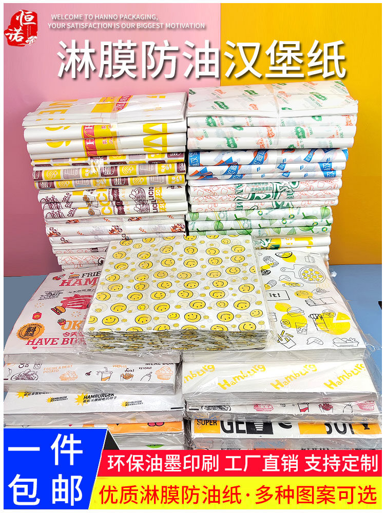 📚 笑脸汉堡纸一次性饭团 老北京鸡肉卷纸汉堡包装纸 卷饼防油纸定制