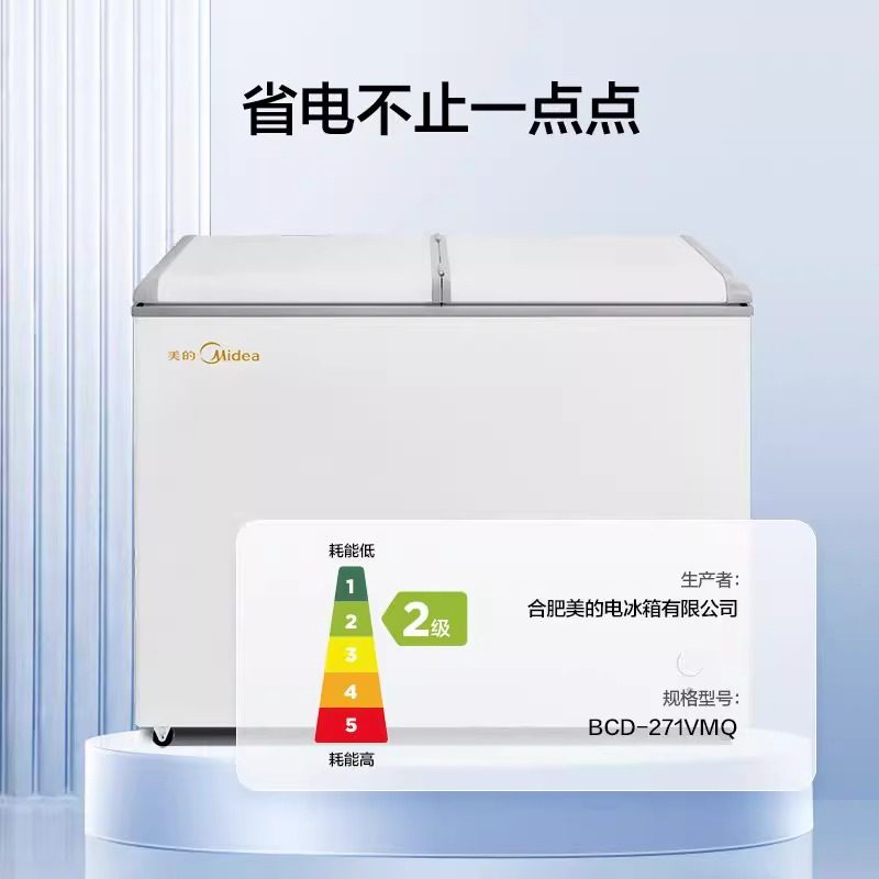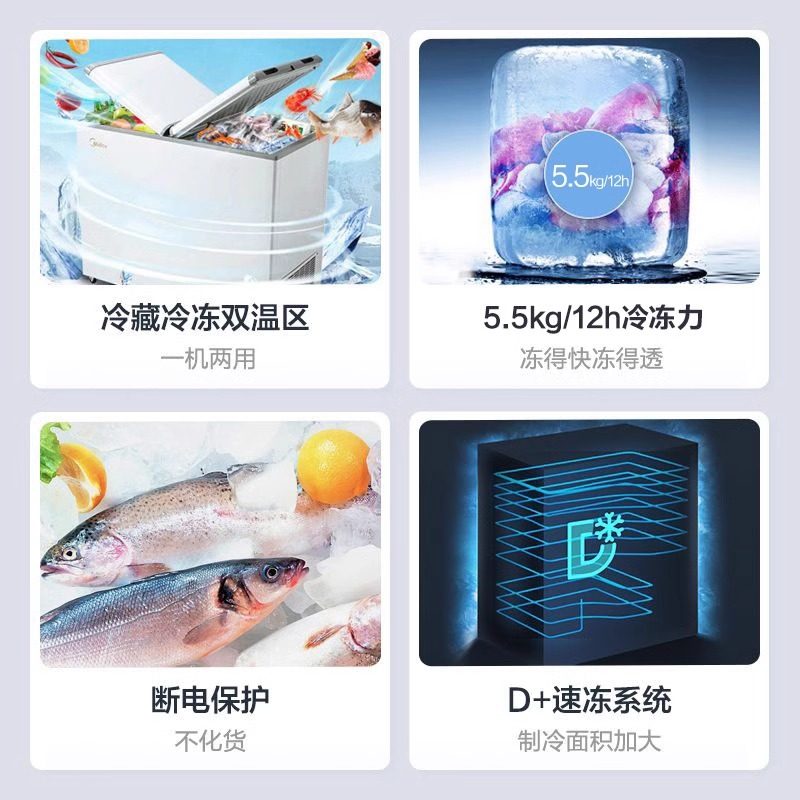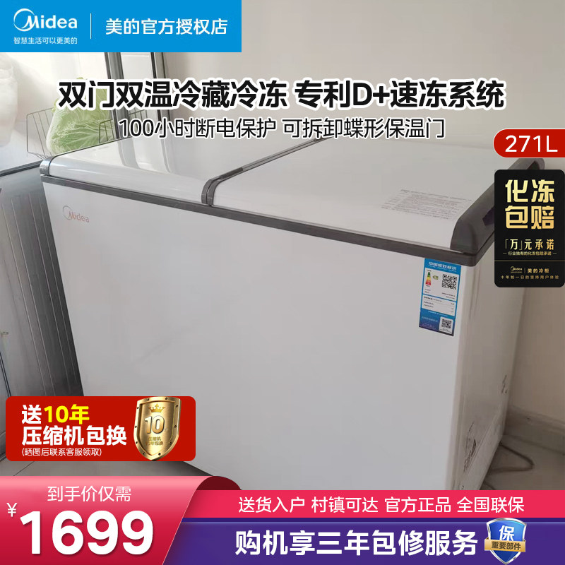 📚 美的271升双温冰柜双门大容量商用冷冻冷藏两用冷柜家用卧式冰箱