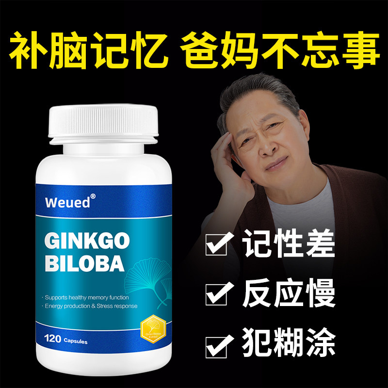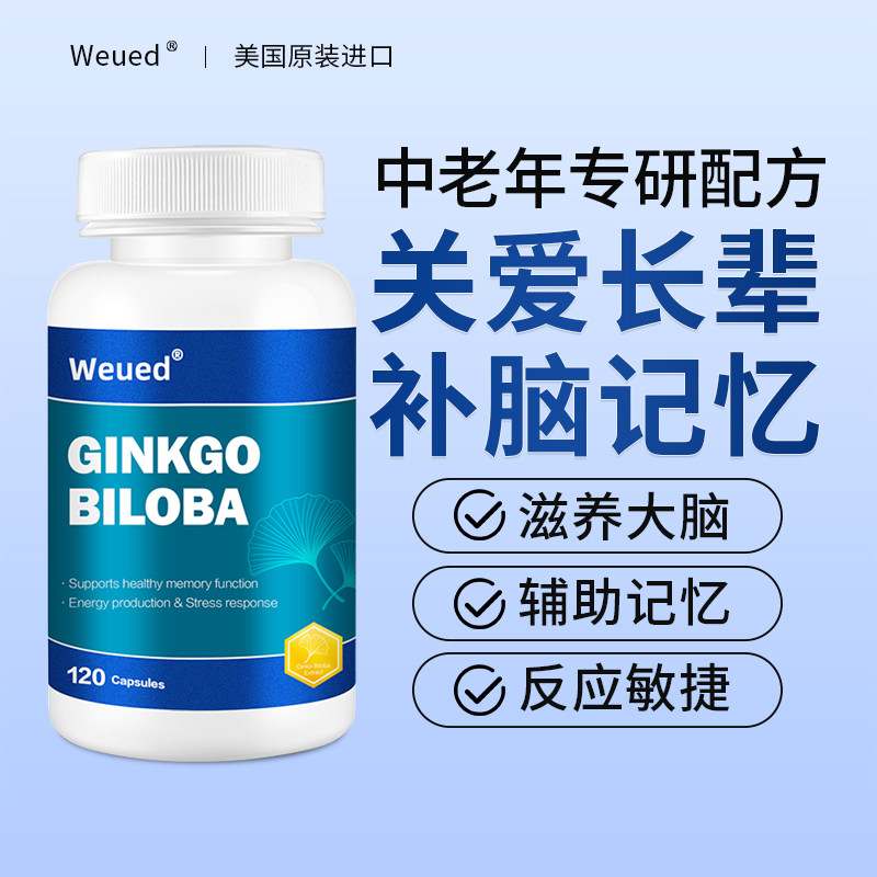 📚 进口银杏叶叶酸加B12补中老年脑子营养脑神经保健品ginkgo biloba