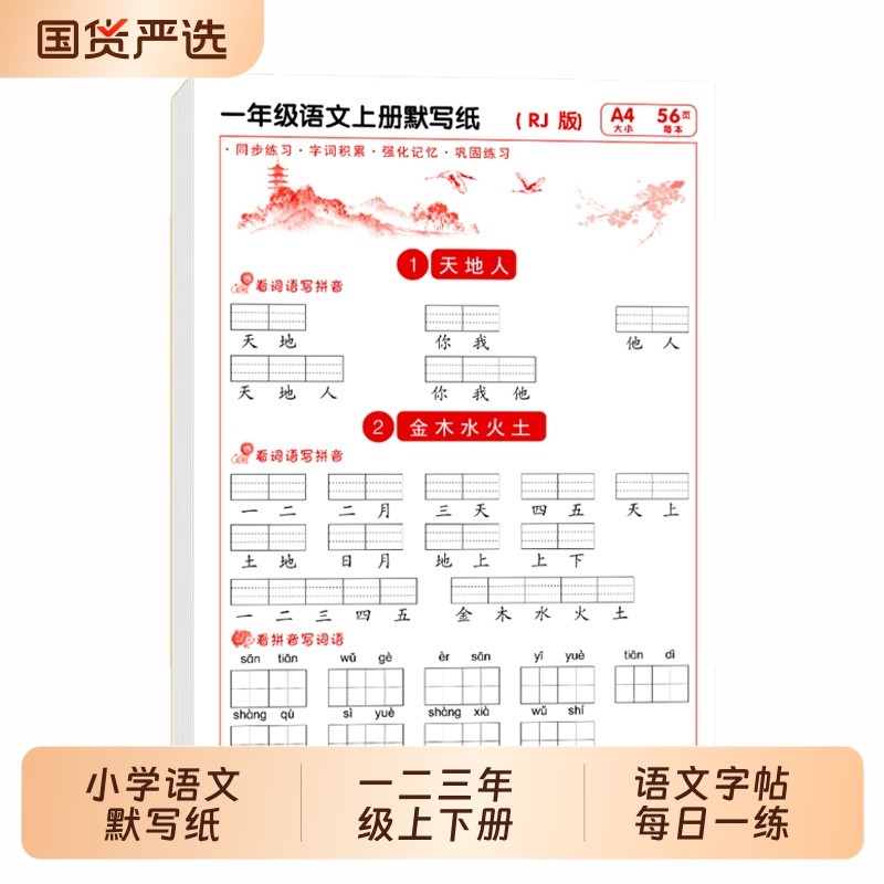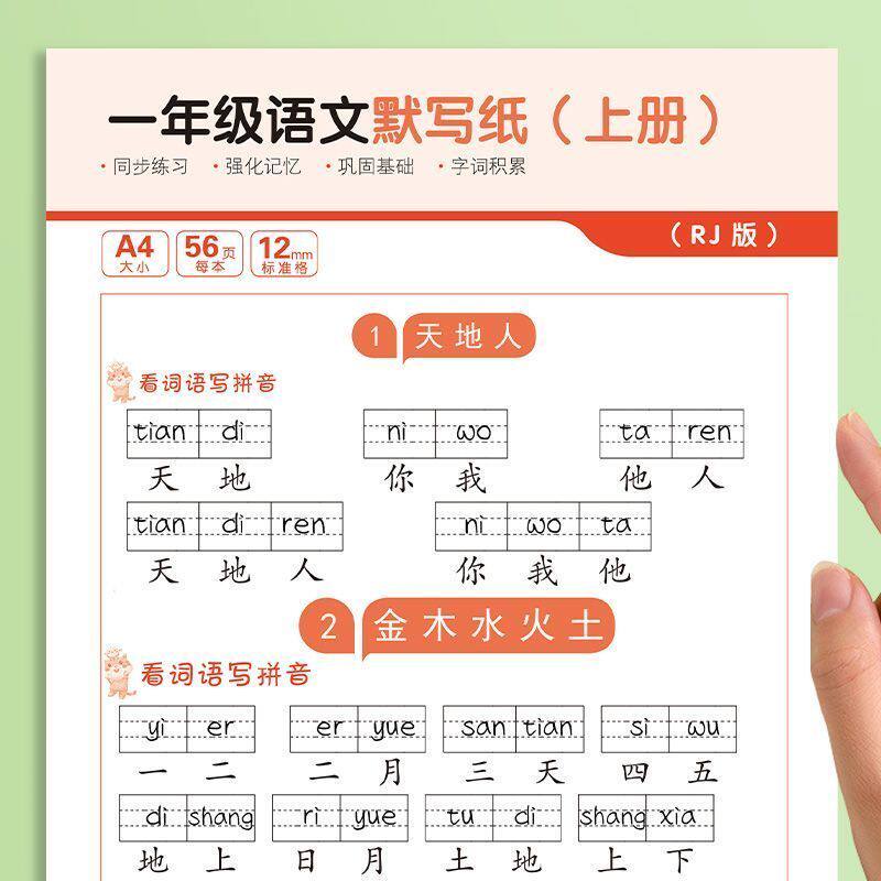 📚 小学一年级语文默写纸二三年级上下册看拼音写词语生字注音练习册语文字帖练字帖每日一练小学生人教版同步训练汉语拼音描红练字本
