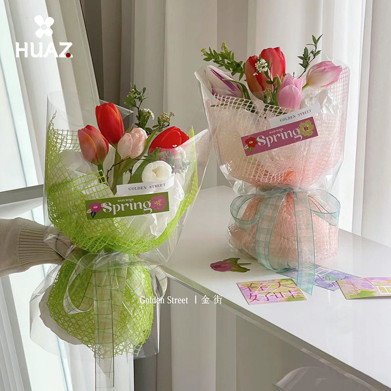 📚 方格网纱鲜花包装纸网格镂空网状红色纱网花束网格纱花艺资材