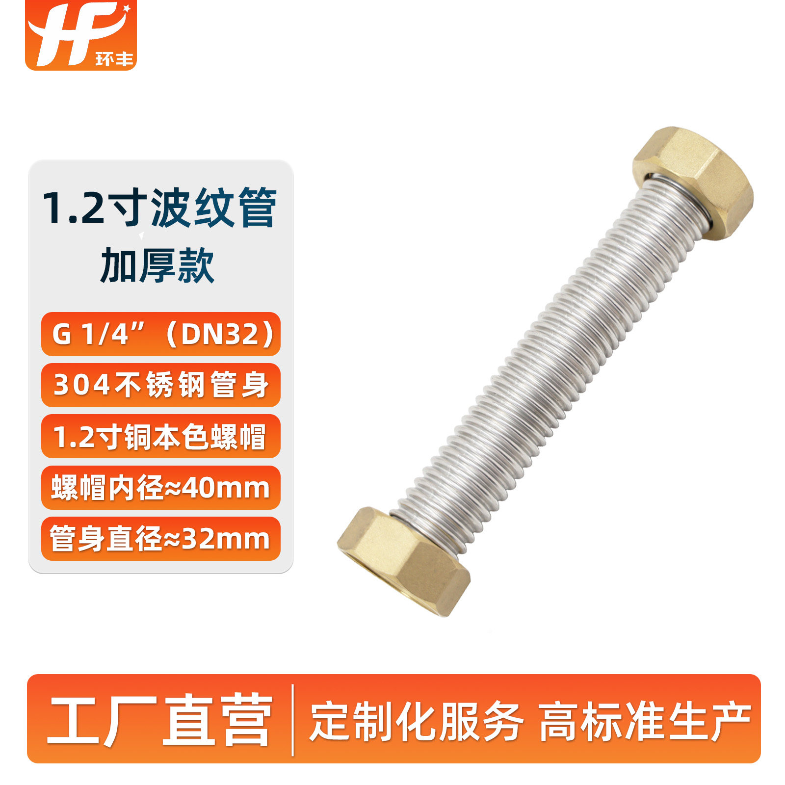 📚 1.2寸DN32波纹管304不锈钢工程专用螺纹管金属防爆进水软管高压管