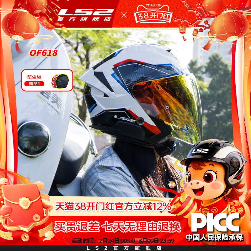 📚 LS2新款摩托车双镜片半盔大码通勤电动车头盔踏板四分之三盔OF618