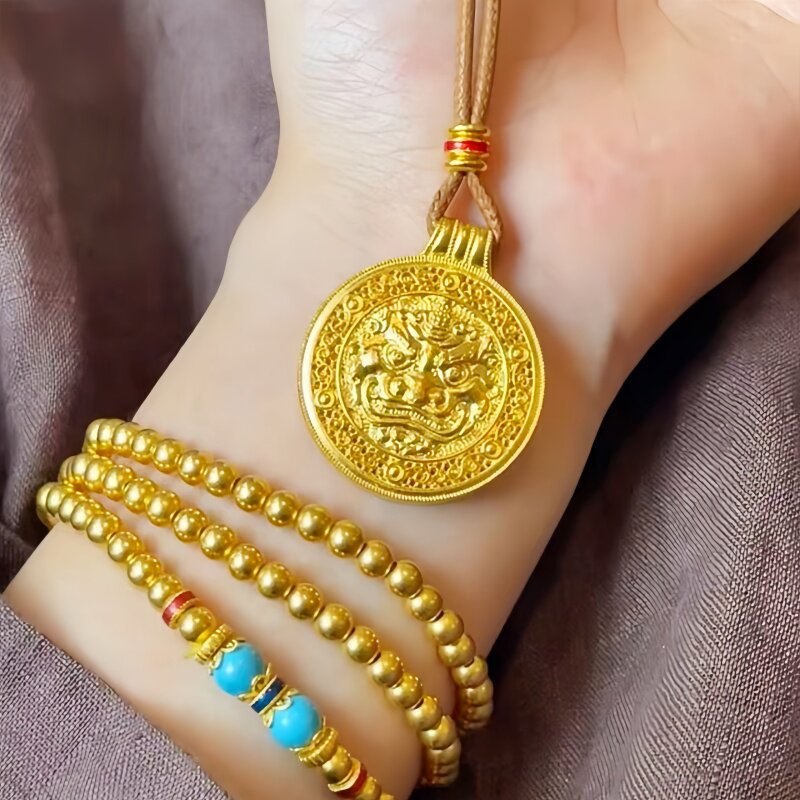 📚 古法经典黄金包银独角兽貔貅八宝罗盘镂空吊坠女项链招财吞金挂坠