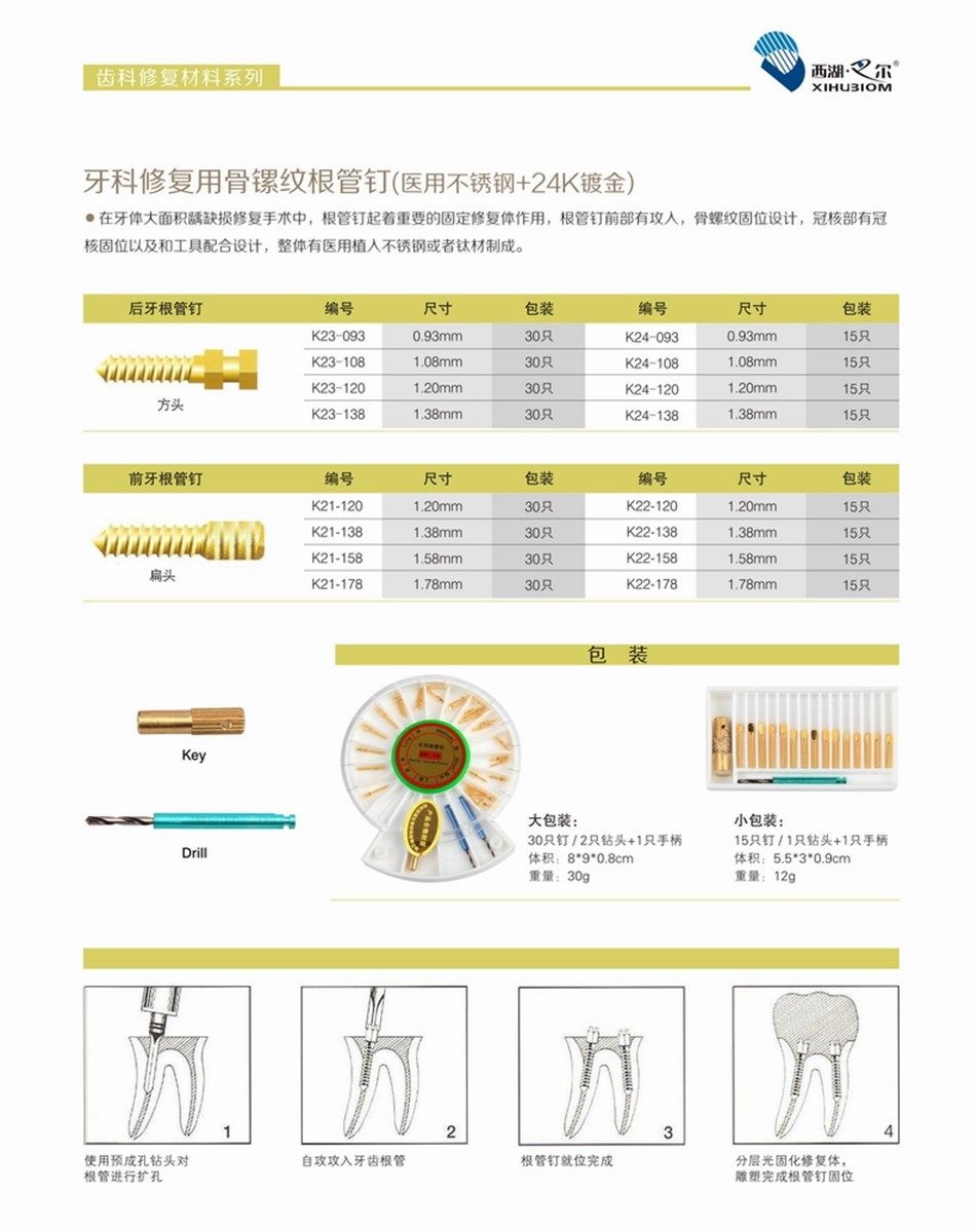 📚 牙科材料根管钉 前牙根管钉 后牙根管钉 西湖巴尔金属桩 根管桩