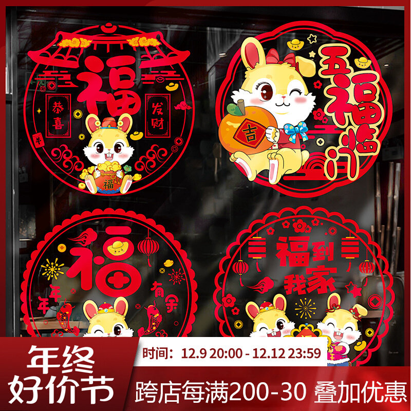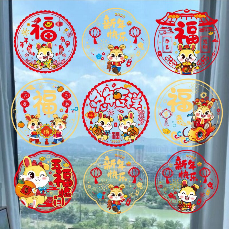 📚 速发2024龙年大中小号彩色静电福字窗花厨窗年玻璃生肖贴纸装台新