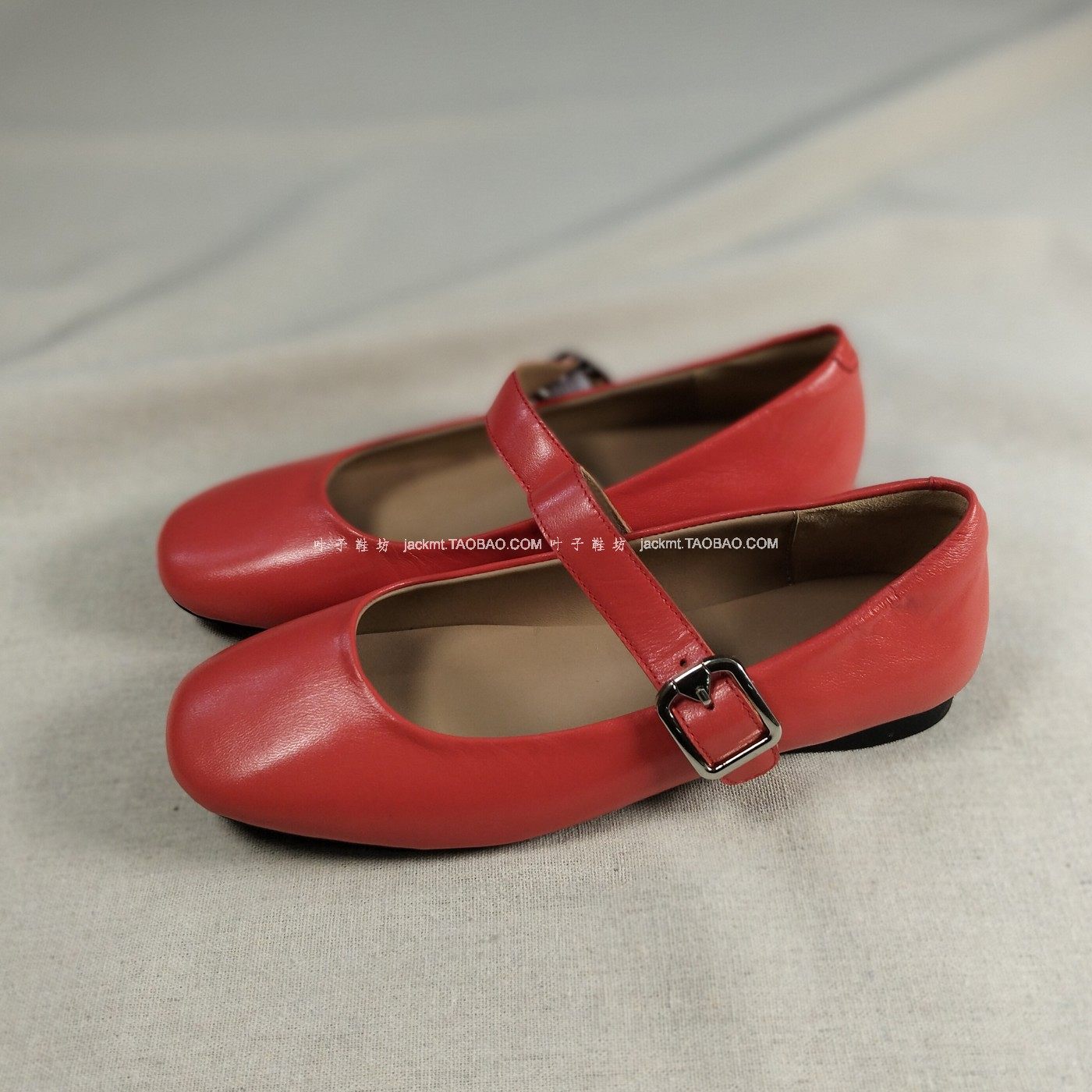 📚 纯原!太舒服!特价~防xiao人本命年红色 法式复古真皮芭蕾舞女鞋