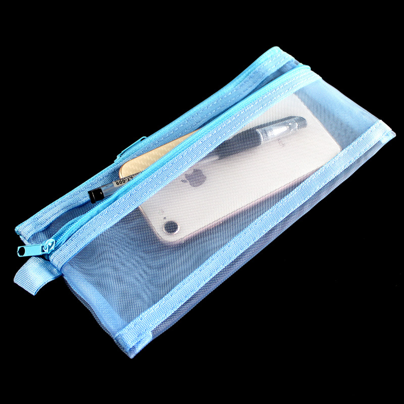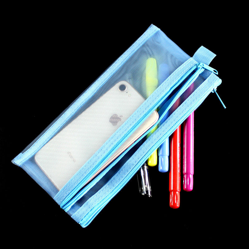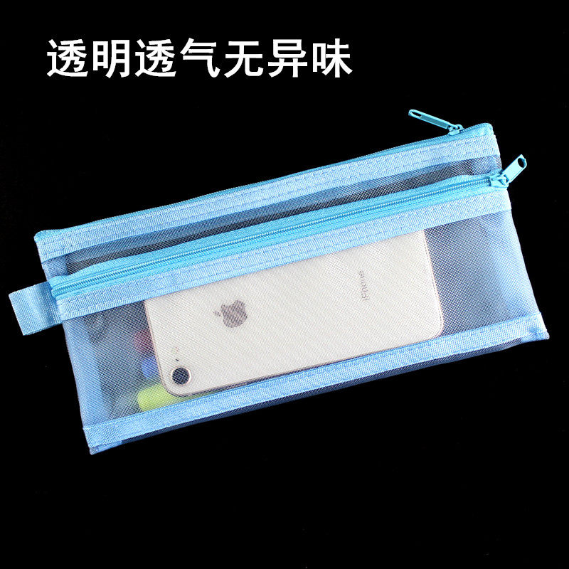 📚 学生用笔袋双层网纱透明票据袋尼龙两层拉链袋简约文具收纳袋定制