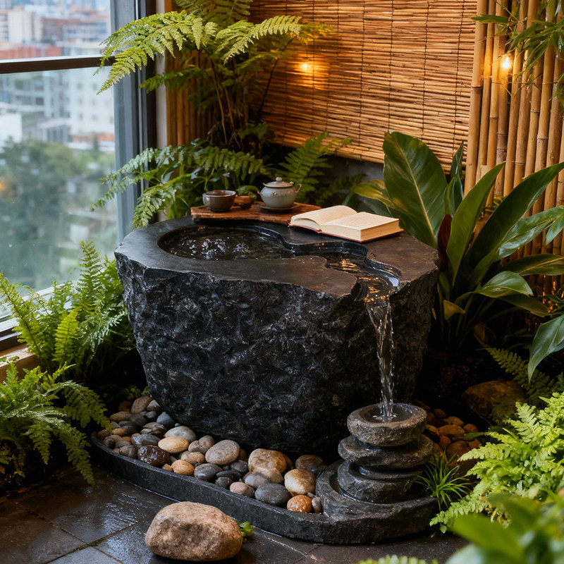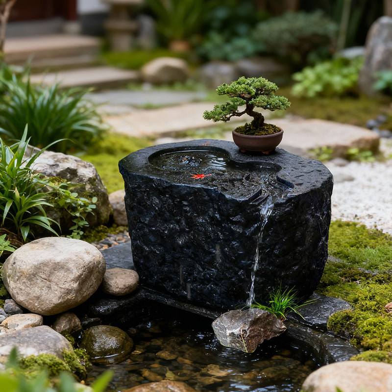 #日式庭院 #流水仿石钵 #循环水景观 #水泥仿石墩 #户外装饰造景 #侘寂风