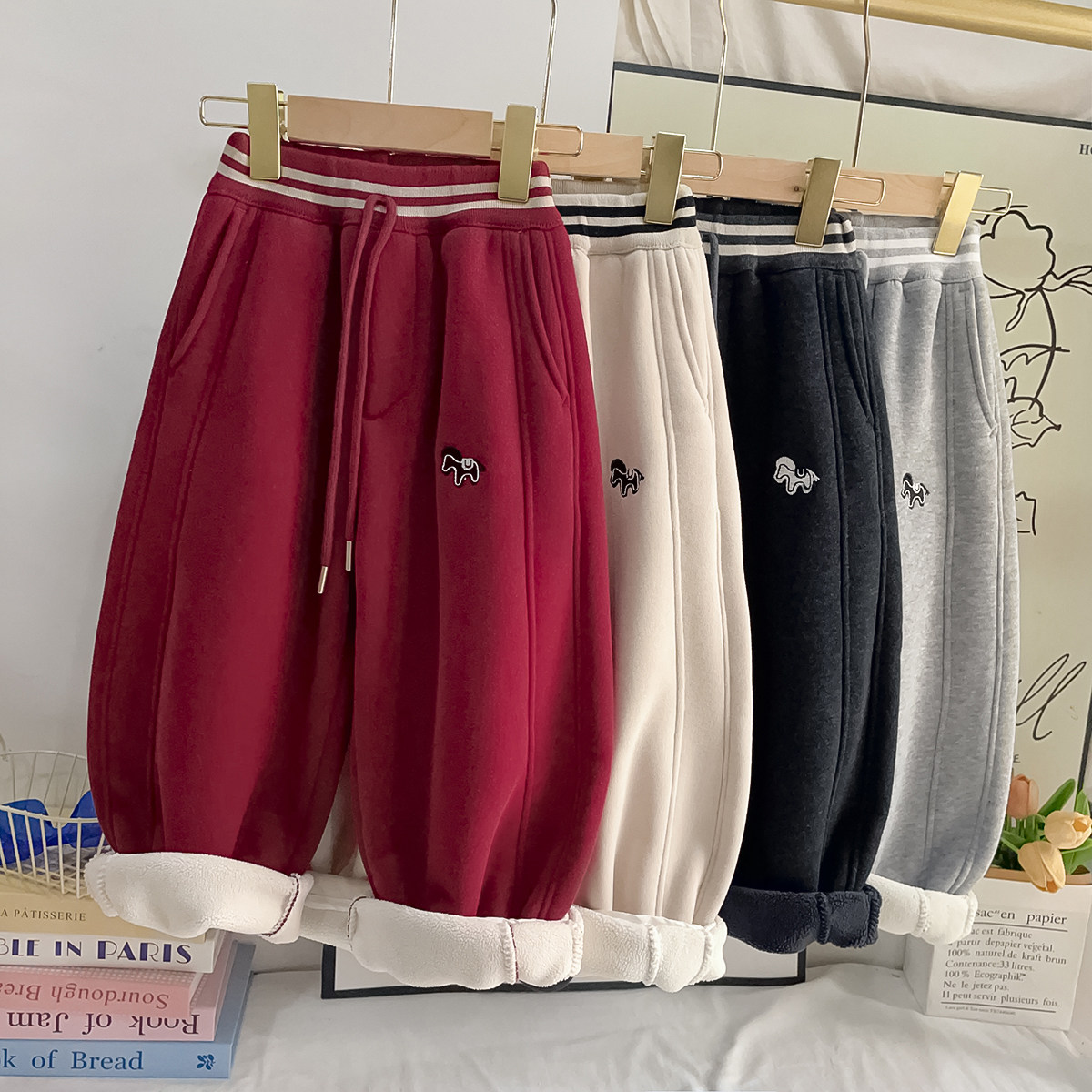 📚 儿童裤子休闲长裤男女童加绒加厚高织高密奥利绒男女童弯刀休闲裤