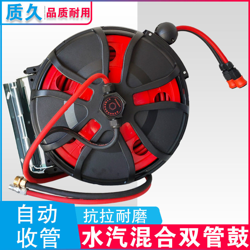 📚 水汽混合双管泡沫鼓洗车美容绕管器卷管器高压洗车水枪水气一体鼓
