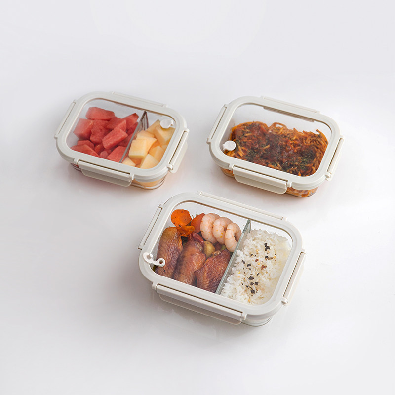 📚 霜山玻璃饭盒微波加热专用上班带饭分格水果便当盒餐盒密封保鲜盒
