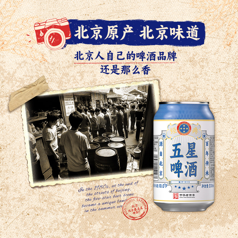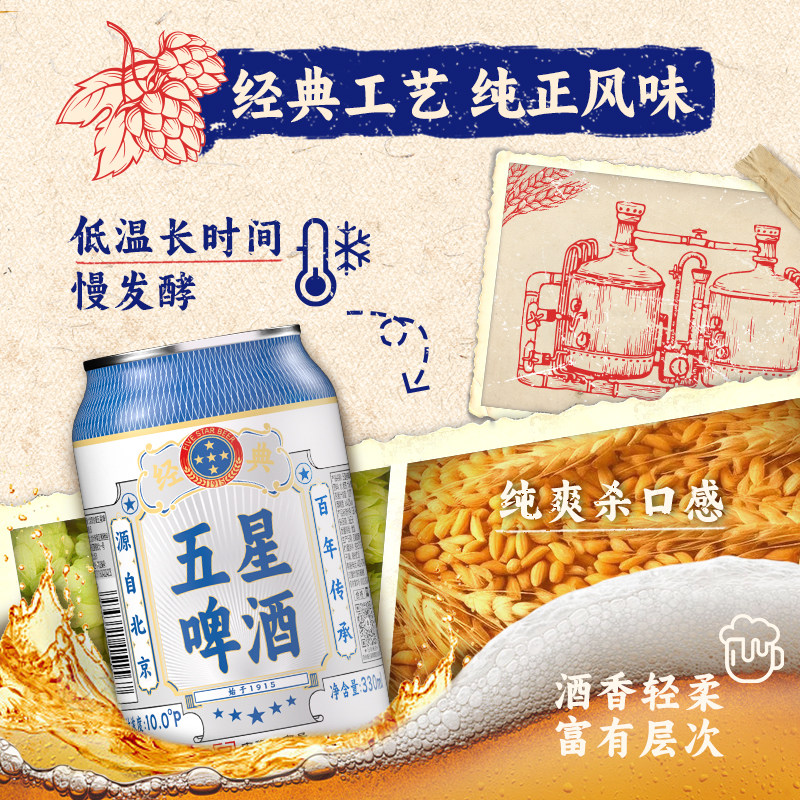 📚 五星经典啤酒330ml*24听 整箱装 中华老字号经典回归