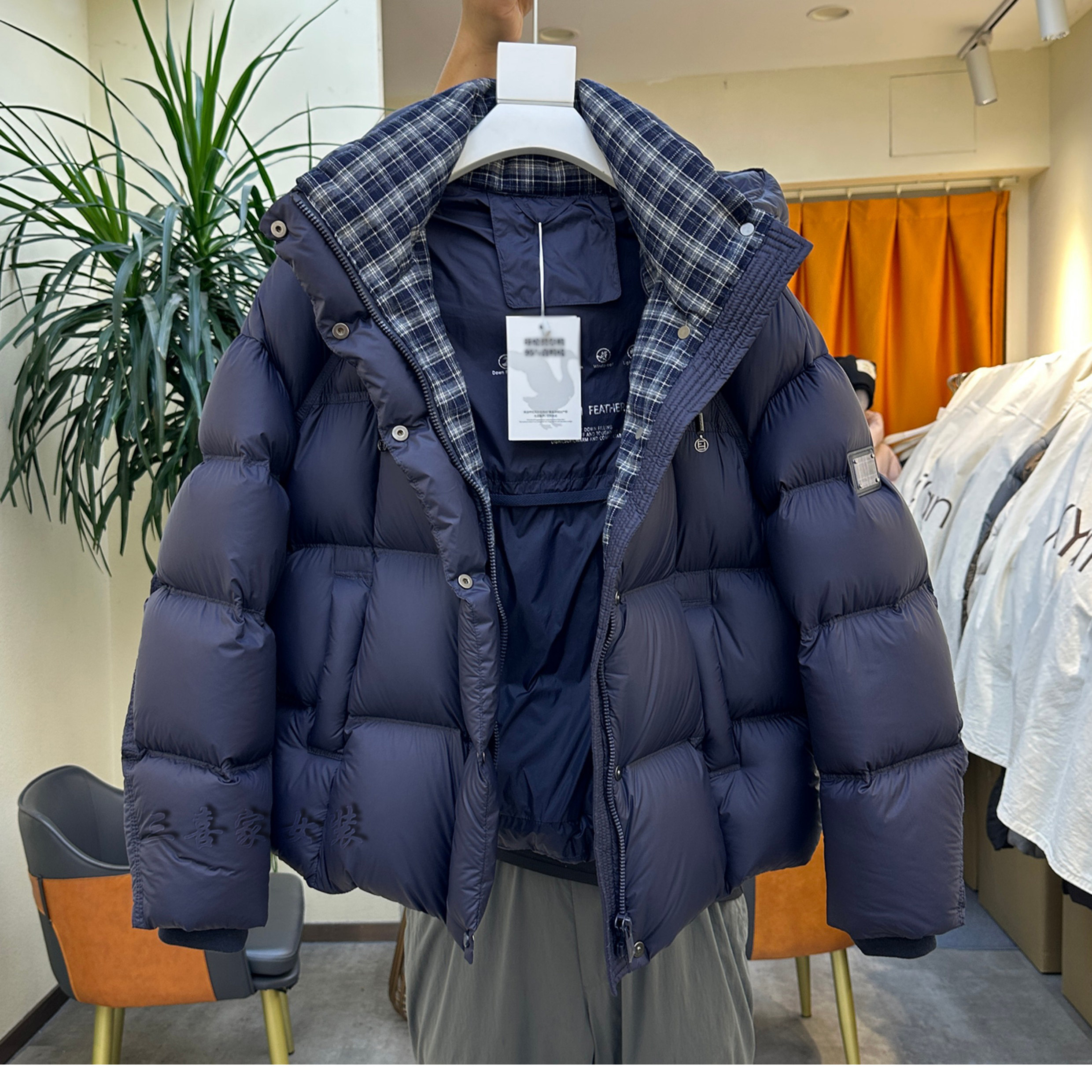 📚 新国标90白鸭绒外套高端女时尚格纹拼接连帽加厚羽绒服短款面包服