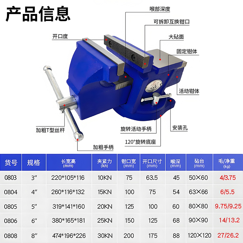 📚 大象台虎钳工业级轻重型超重型088983款超厚大加紧力经典精密台钳
