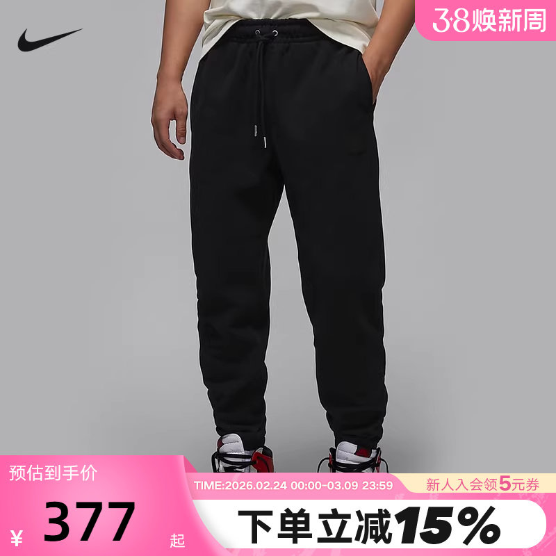 📚 耐克男裤薄绒黑色卫裤秋冬新款Jordan飞人休闲收口长裤FV7252-010