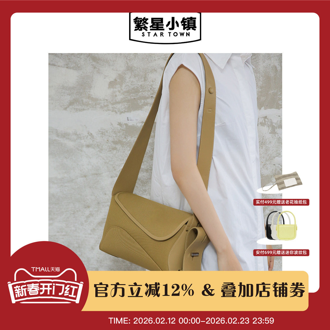 67¥ HU071 FZLYUnmDdDk¥ https://m.tb.cn/h.7DBpNzq 繁星小镇STARTOWN飘带枕头包中号休闲感腋下包单肩斜挎包2024新款 --------------------- 【原售价】599元 【优惠券】250元 【券后价】349元。