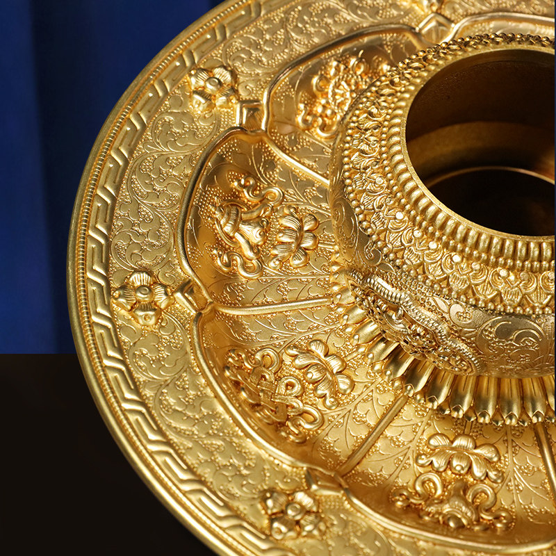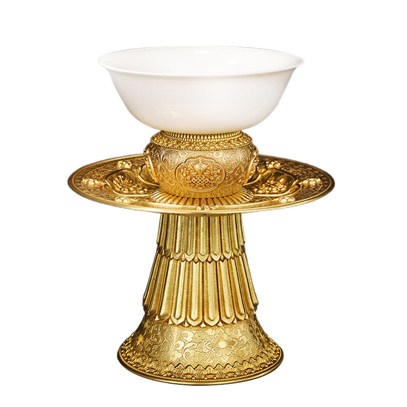 📚 慧宝黄铜藏传高脚供佛贡碗玉瓷八吉祥供水碗护法杯果盘底托摆件