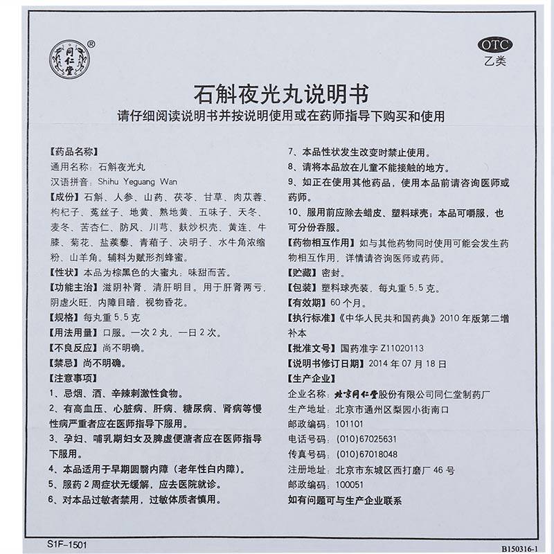 📚 同仁堂石斛夜光丸中药北京同仁堂官方旗舰店明目正品清肝阴虚火旺