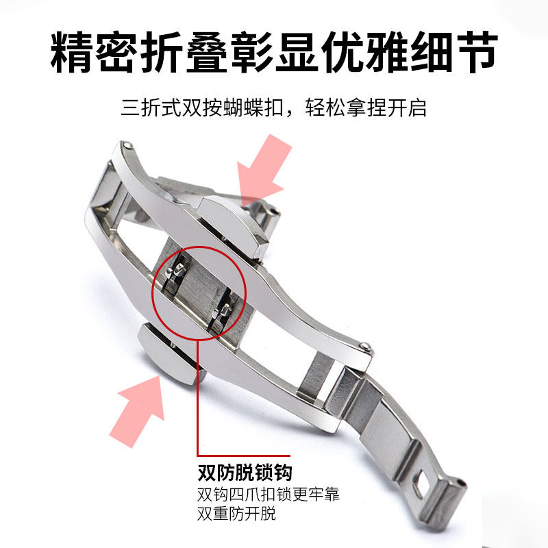 📚 代用天梭罗西尼天王依波不锈钢带表扣双按蝴蝶扣折叠扣手表配件