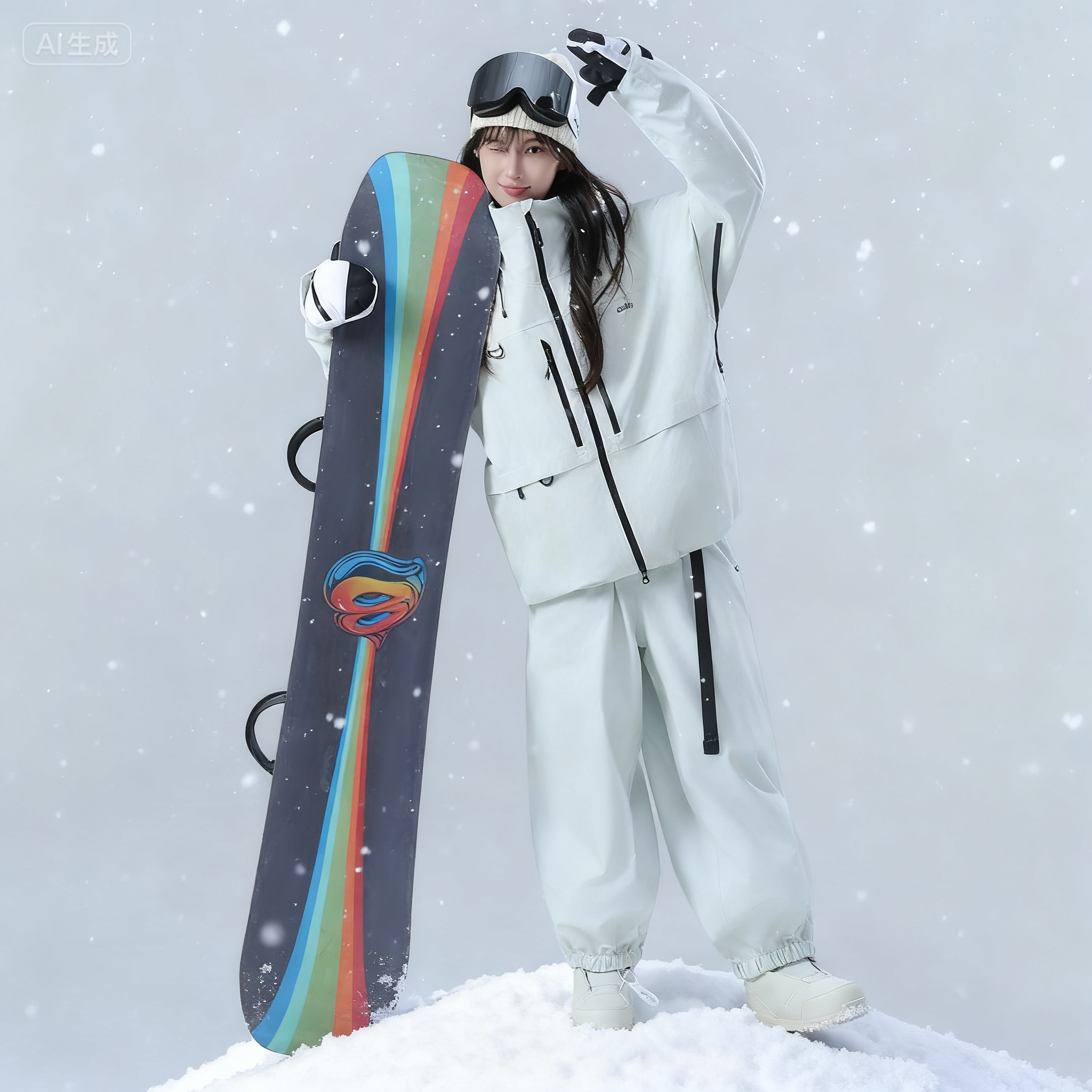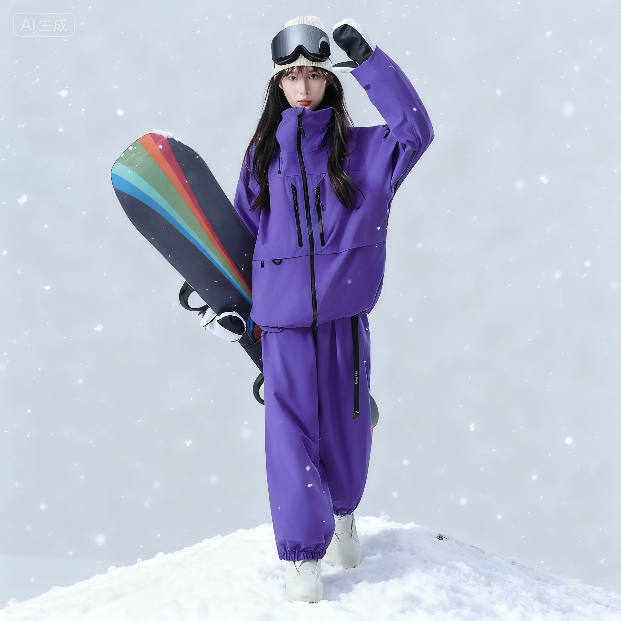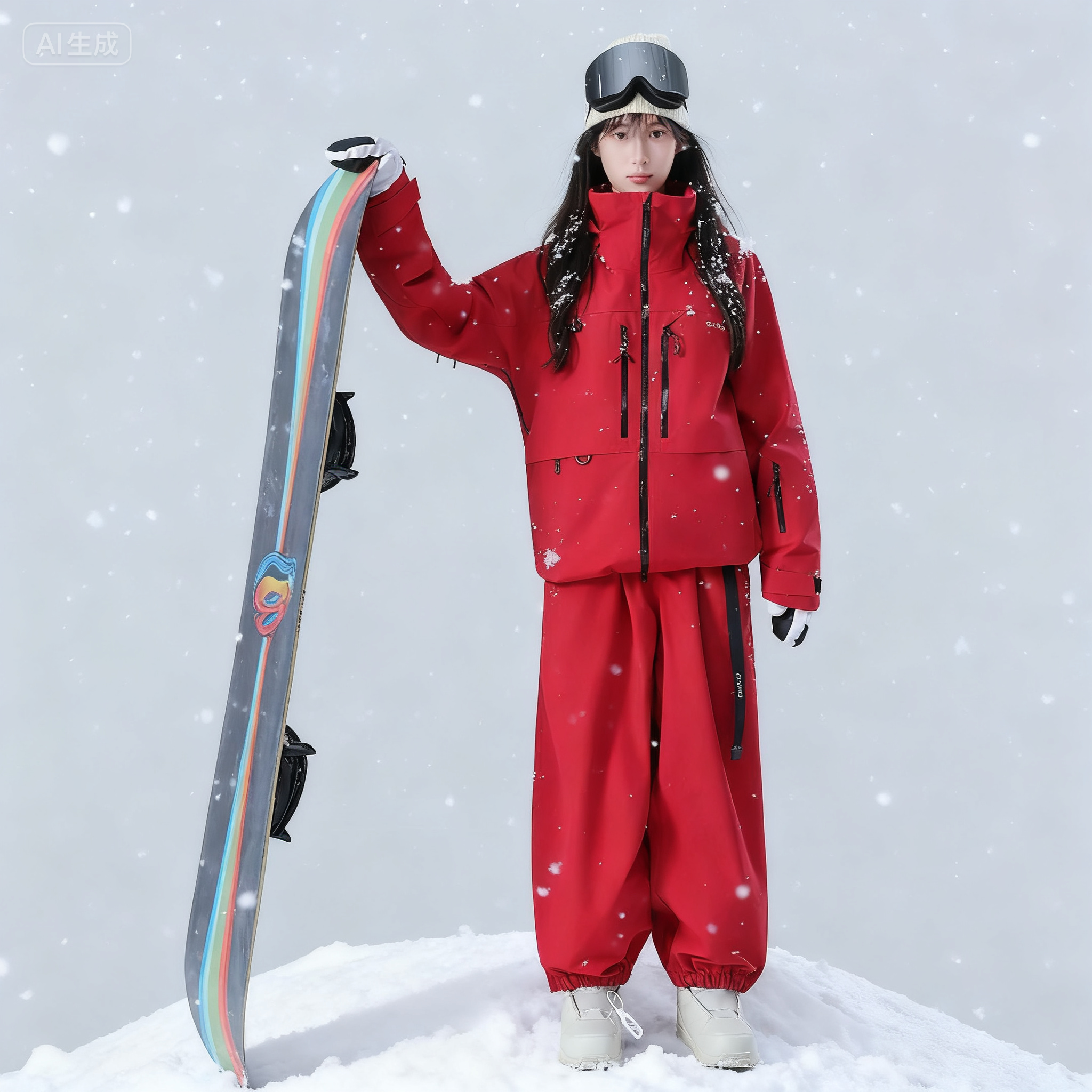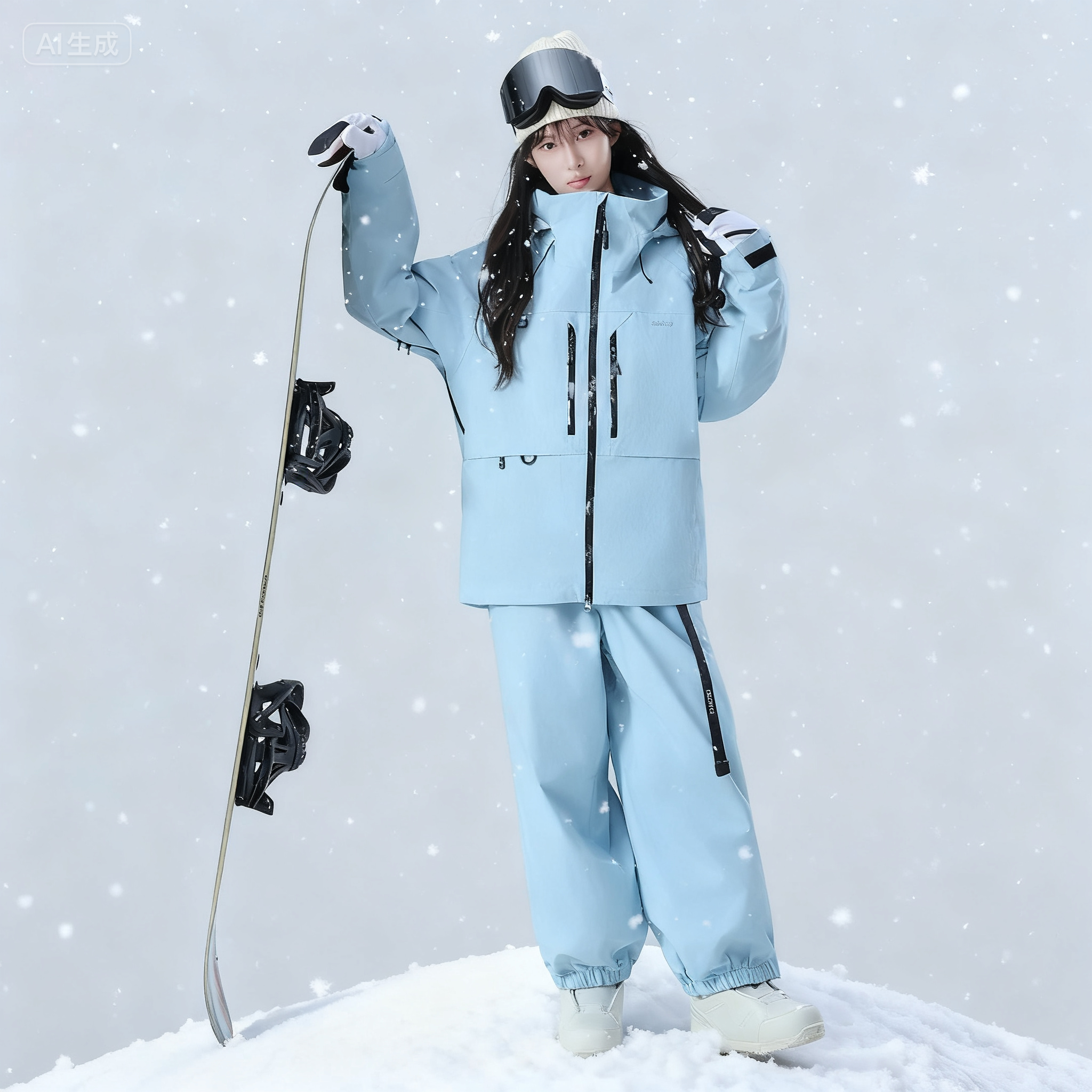 📚 滑雪服套装女男款衣裤单板防水加厚全压胶专业雪服衣裤套装3L美式