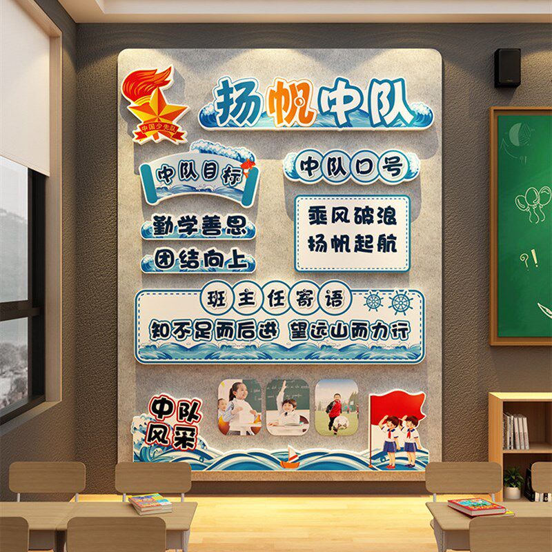 📚 扬帆中队角布置毛毡文化墙贴面少先教室班级装饰环创黑板海报小学