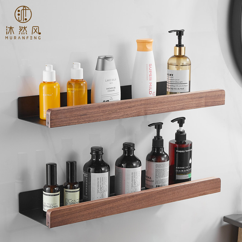 📚 胡桃木洗手间卫生间置物架壁挂式实木浴室厕所厨房洗漱架子洗手台