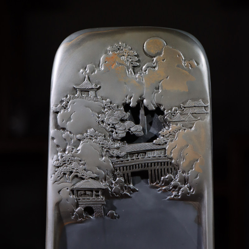 📚 国家非遗 歙砚水坑金晕俏色雕刻溪山访友孤品砚 名师精品原石砚台文房四宝摆件礼品天然整块砚石非端砚