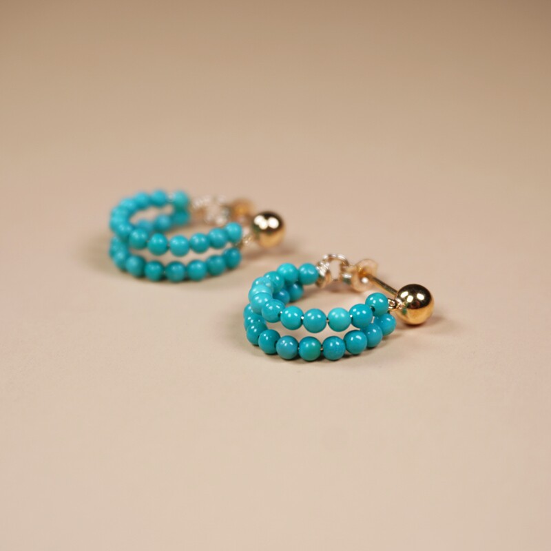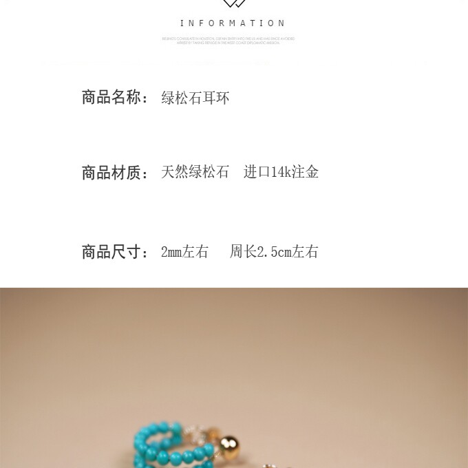 📚 天然绿松石耳环女款米珠串珠原创设计注金饰品原创文艺蓝绿松耳饰
