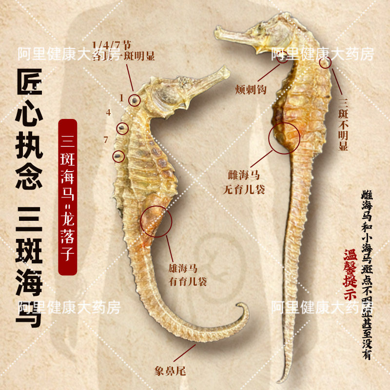 📚 钰宸源三斑海马干货3g装海马中药材泡酒一公一母温肾助阳中药饮片