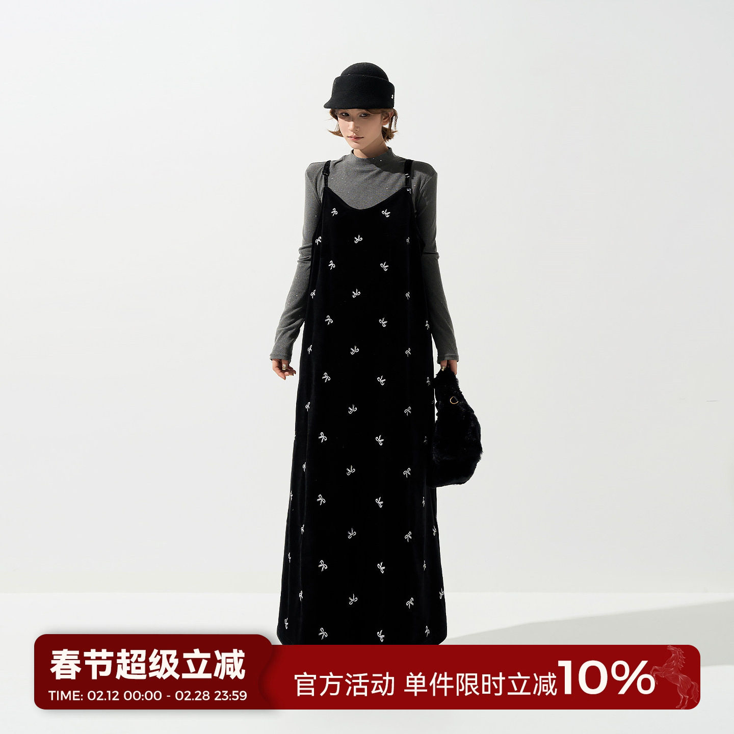 📚 吴童童丝绒刺绣V领无袖吊带连衣裙女秋冬韩系加厚宽松显瘦A字长裙