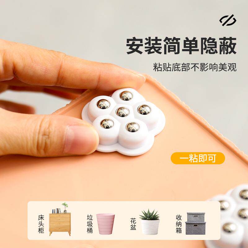 📚 六滚珠滑轮万向轮免打孔粘贴式脚轮家具收纳箱移动小轮子垃圾