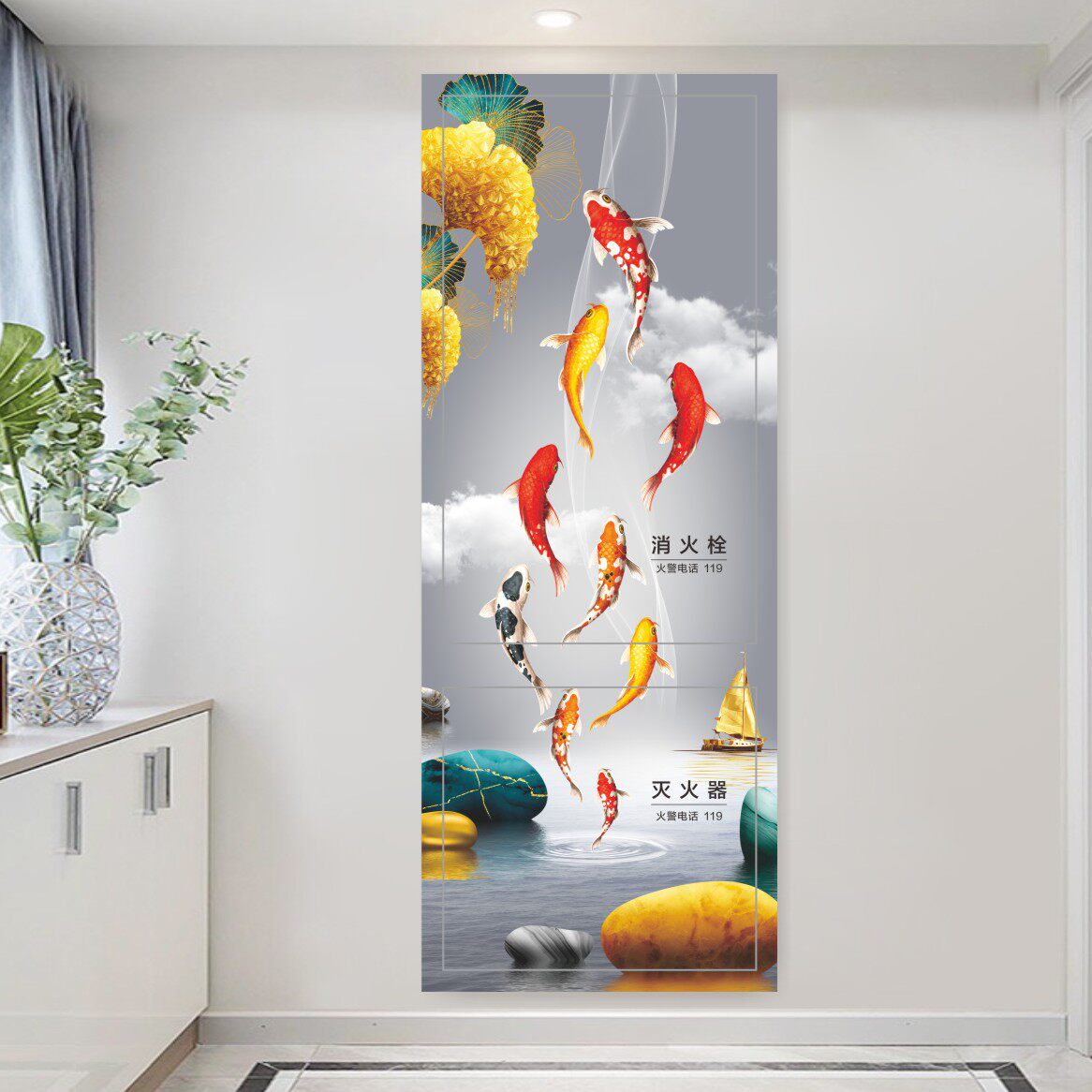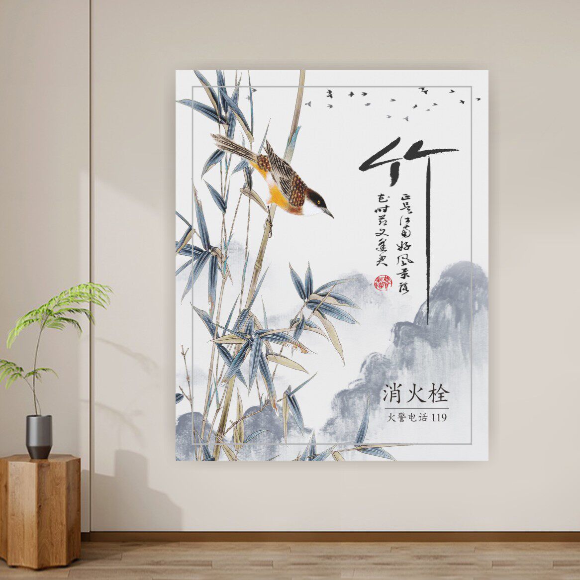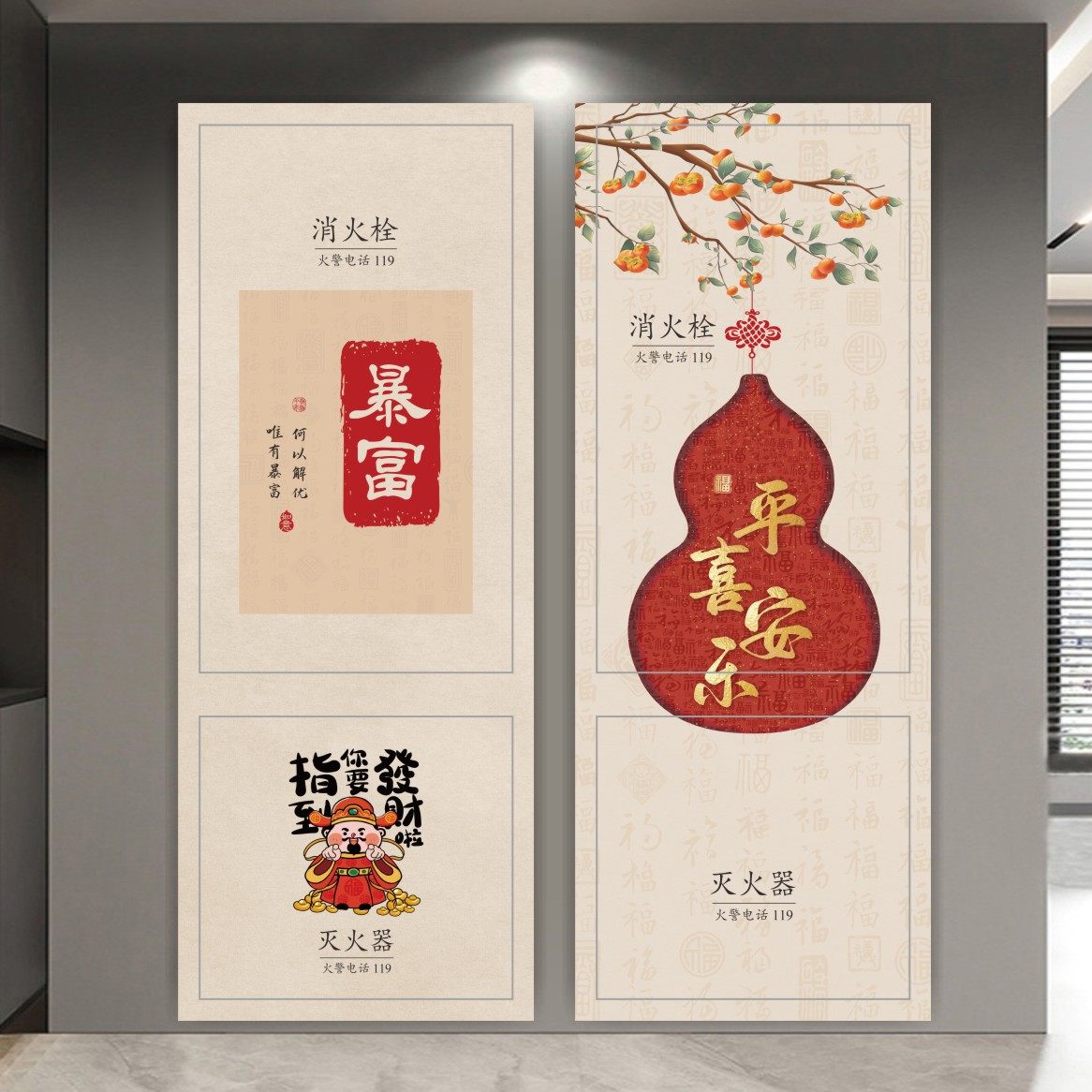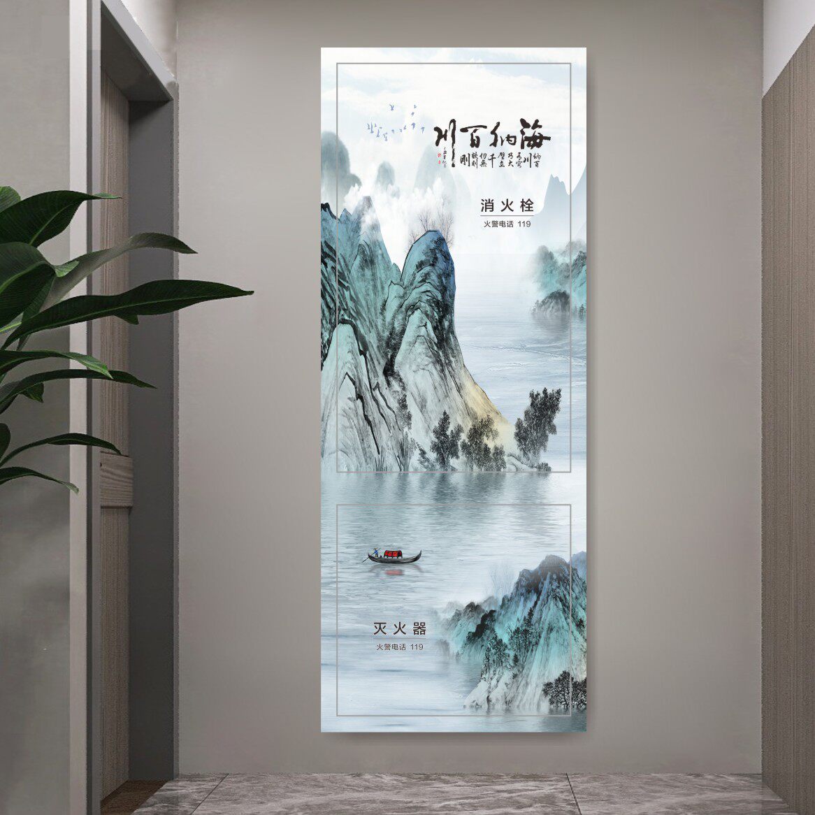 📚 新中式山水画消防栓美化装饰遮挡贴纸中国风灭火器贴画电箱防火门