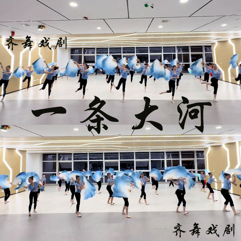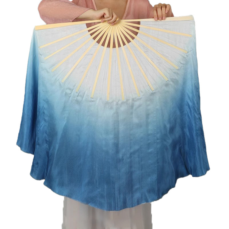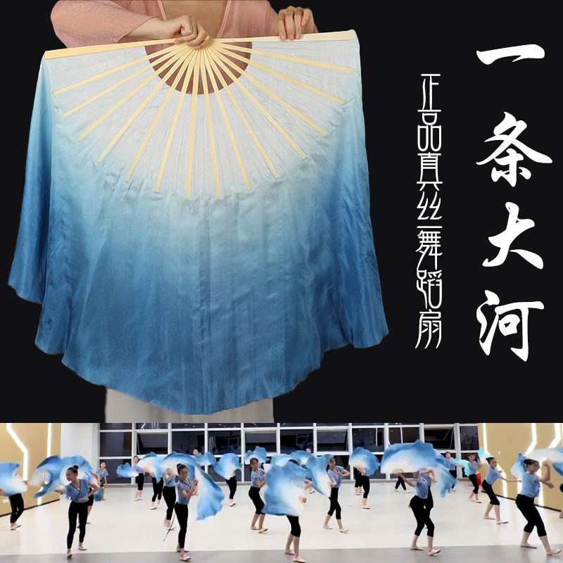📚 一条大河真丝舞蹈扇依梦阑珊古典舞胶州秧歌跳舞扇子双面加长蓝色