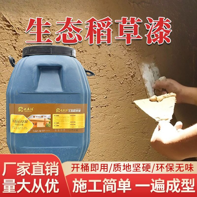 📚 斤大桶稻草漆生态稻草泥内外墙民宿饭店艺术涂料肌理颗粒质感