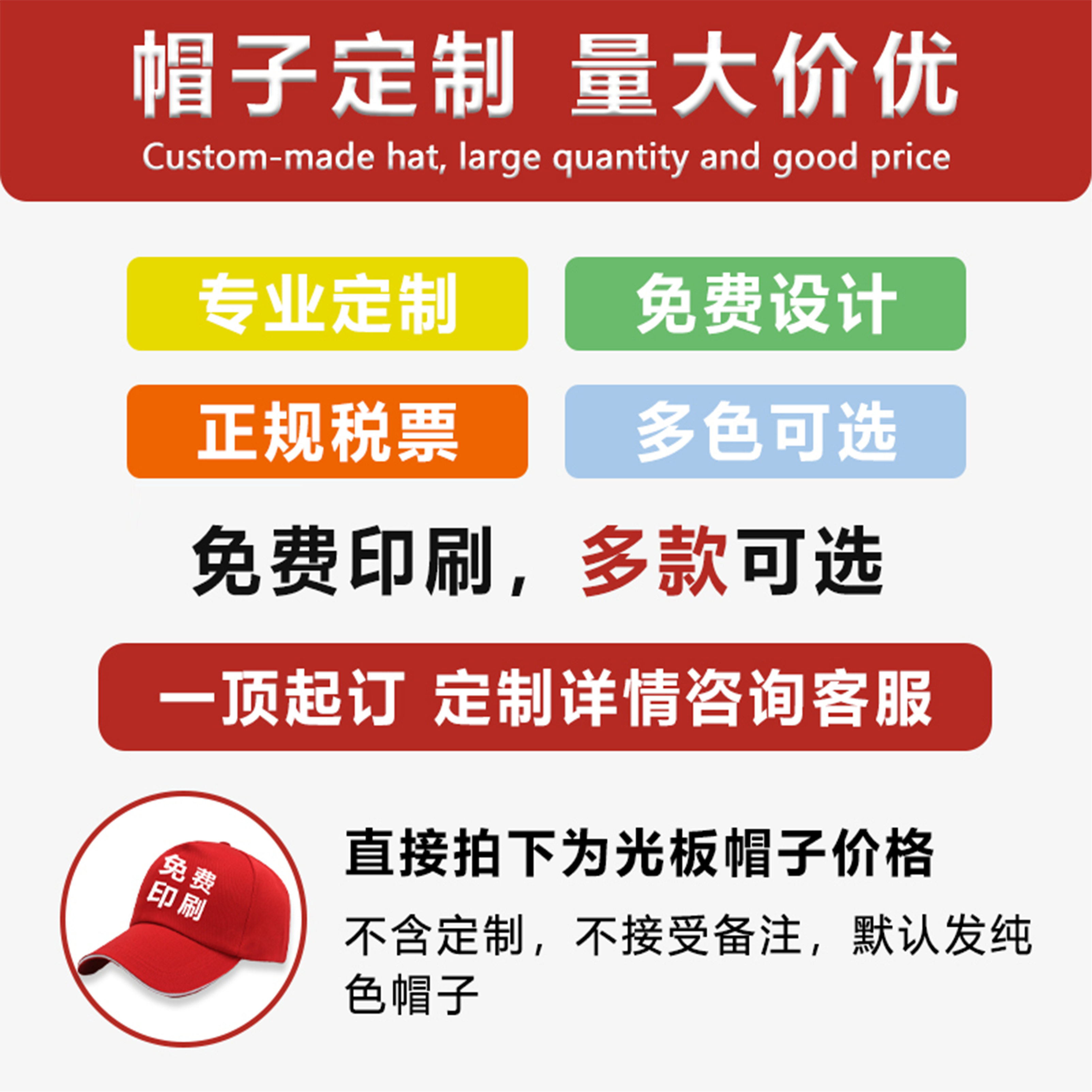 📚 帽子定制LOGO印字志愿者帽棒球帽订做学生帽旅游帽外卖餐饮工作帽