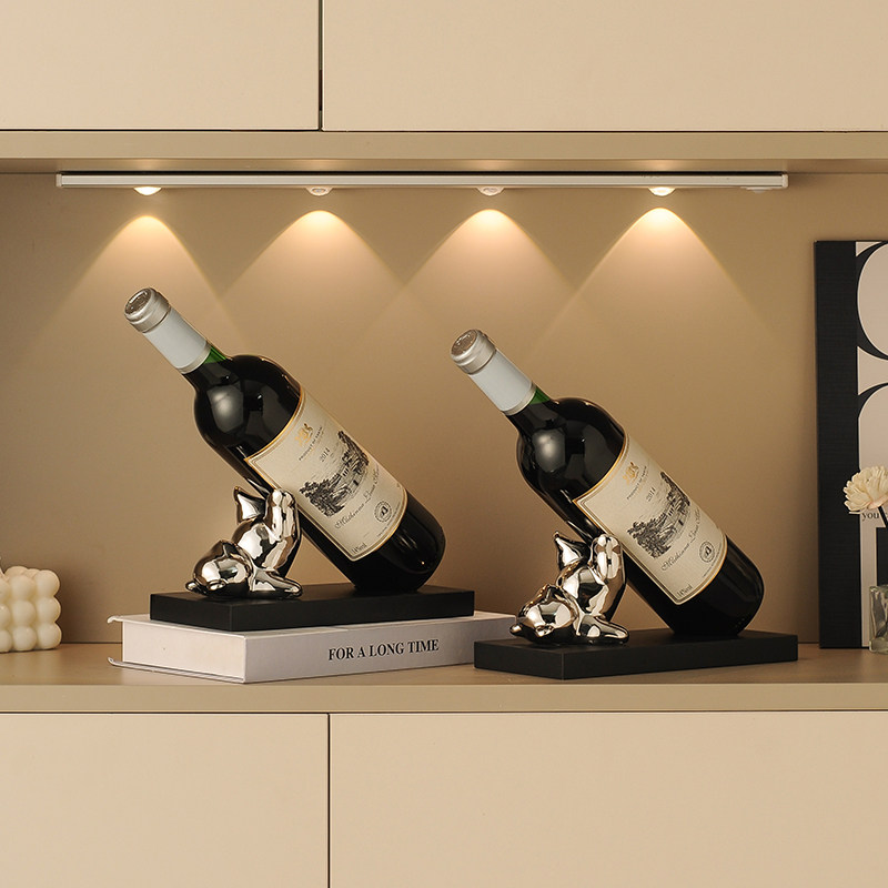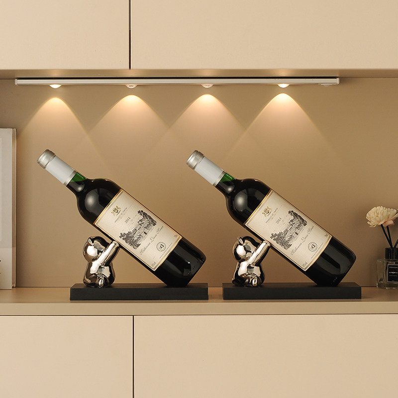 📚 小熊红酒架摆件现代轻奢网红高颜值家用创意乔迁礼物斜放酒柜装饰