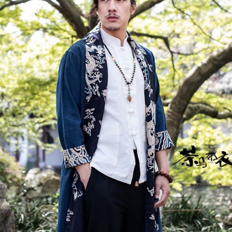 📚 春冬浮世绘道袍中国风男装披风斗篷式古风男士中长款风衣外套汉服